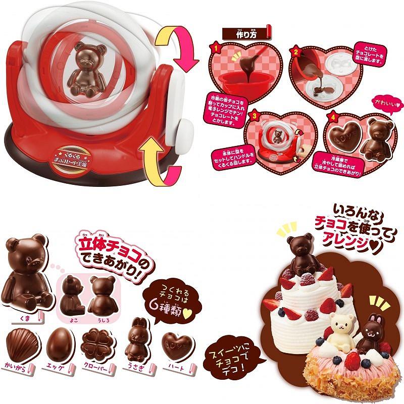 溶かしたチョコレートを型に流し込んで、くるくる回しながら冷やし固めて造形するクッキングトイです☆