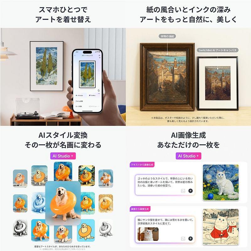 絵を飾る週間がなかったのですが、フォトフレームのような感じで自分のイメージしてたものをAIで作成し飾る事でとても満足感が高い商品だと思います