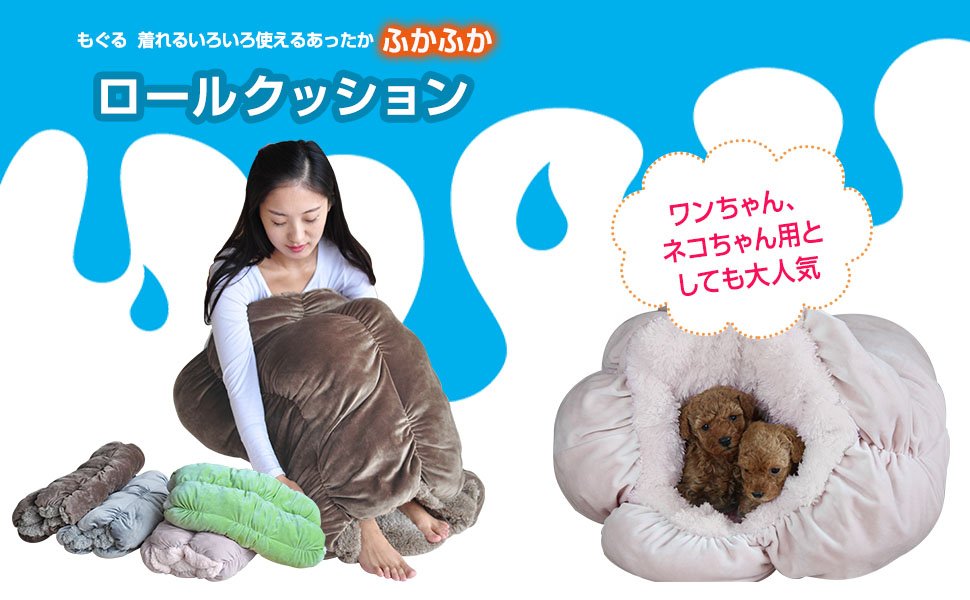 ペット用にも使える「ロールクッション」ちくわのようなロール状なので、中にすっぽり半身を入れることのできるふわふわクッションです☆