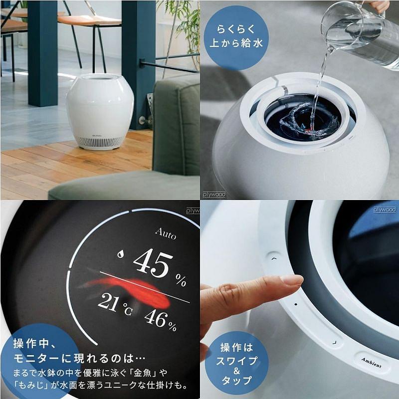 水を上から注ぎ入れて給水する壺スタイルのインテリア加湿器です☆