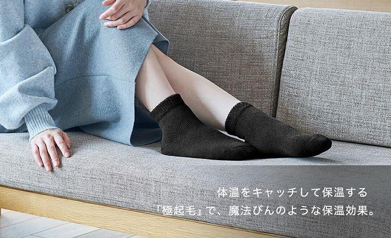 遠赤外線放射セラミック繊維の保温効果で足元を暖かく包むルームソックスです☆