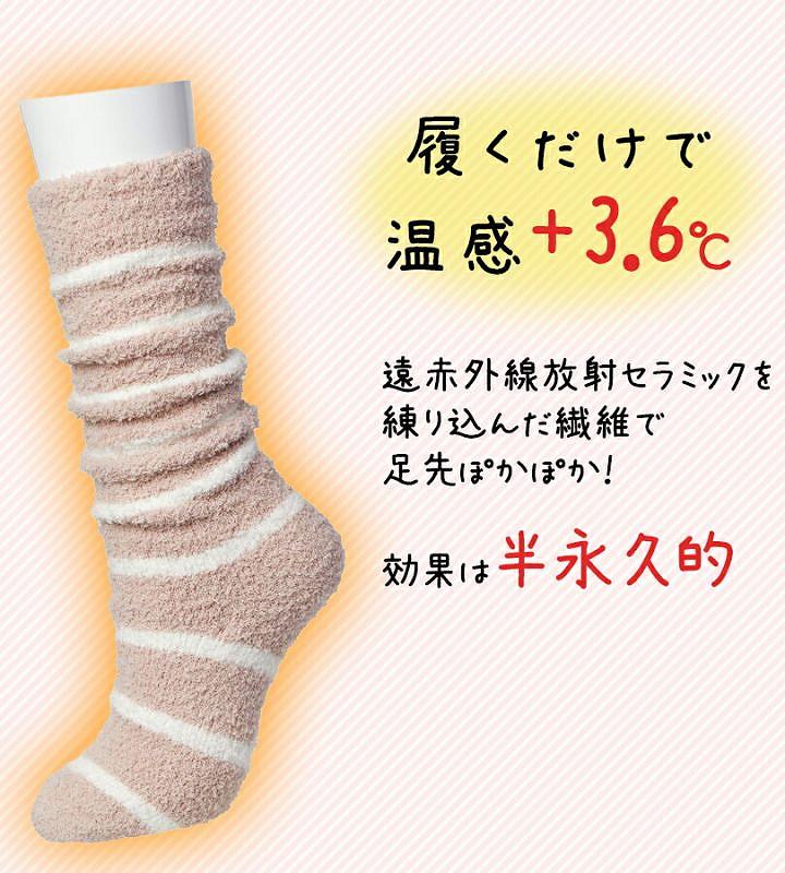 遠赤外線放射セラミック繊維の保温効果で足元を暖かく包むルームソックスです☆